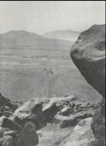 As we observed the scenery, the horizon to the left darkened. Black, heavy cloud masses gathered. Driven by the storm, they were swept forward into one of the valleys. The same storm that chased the clouds also raged with violent speed across the valley floor, lifting great swirls of dust up toward the clouds. These now began to discharge their contents in a heavy rain, which to our eyes looked like a cloudburst. The intensely heated, dry air seemed to completely absorb the falling rain, which never reached the surface of the earth to settle its dust. The storm, the dust swirls, the clouds, and the rain followed that one valley exclusively, while all the others were bathed in the most glorious sunshine. Heavy shadows were cast from the clouds down to the earth, which in their dark variations of color resembled islands in the ocean. It was a scene worthy of being captured on canvas with a brush. “Great are the works of the Lord; sought out by all them that have pleasure therein.”